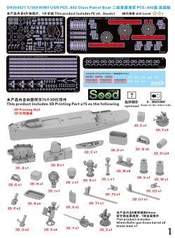 3D printed parts x75; PE x4; Brass barrel x6; brass mast x1; Decal x1